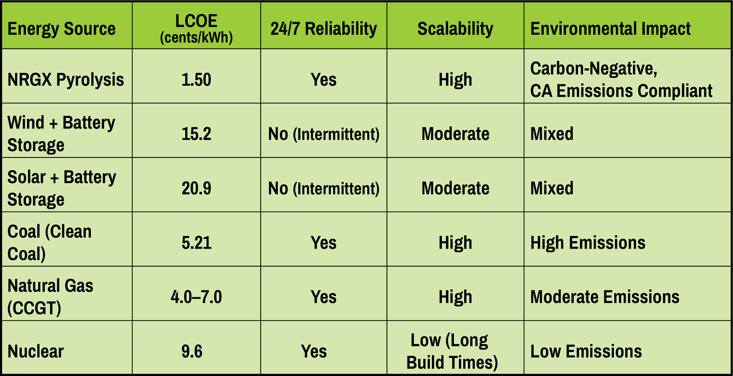 The platform has operated for over two decades in harsh military environments and is proven on U.S. Department of Defense installations under mission-critical conditions. It meets full compliance with California’s South Coast AQMD, the world’s most stringent emissions standard. No other commercial platform matches this combination of validation, regulatory clearance, domestic production, and deployment versatility. Scalable from 80 to 1,200+ tons per day or more and installable in as little as 6–12 months, NRGX delivers unmatched flexibility at scale—supporting both retrofit and greenfield infrastructure while integrating seamlessly with existing logistics and operations.